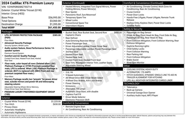 Whether you're embarking on a family adventure or seeking a luxurious daily driver, the 2024 Cadillac XT6 Premium Luxury is the perfect companion. Experience the pinnacle of Cadillac craftsmanship and engineering, and let this exceptional SUV elevate your driving experience.