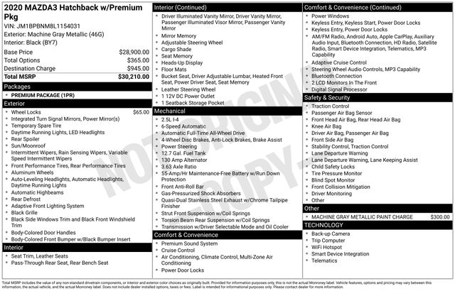 Machine Gray Metallic 2020 Mazda Mazda3 6-Speed Automatic AWD Premium 4D Hatchback