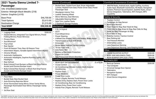 Midnight Black Metallic 2021 Toyota Sienna CVT FWD Limited 7 Passenger 4D Passenger Van