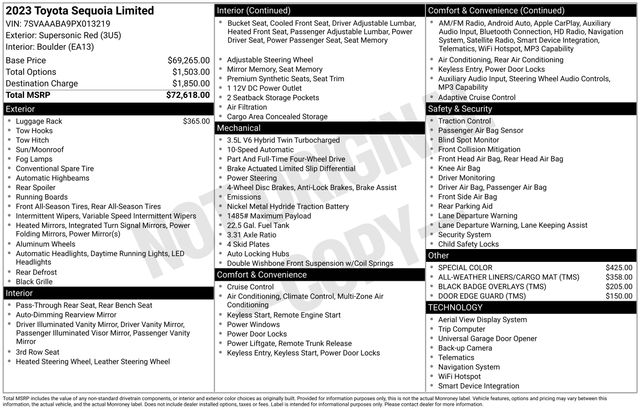 Supersonic Red 2023 Toyota Sequoia 10-Speed Automatic 4WD Limited 4D Sport Utility